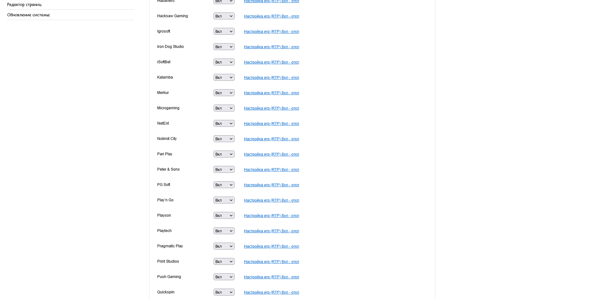 Полный контроль игр, как по провайдерам, так и по отдельности